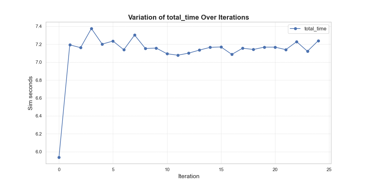 - Beyond iteration 30, the time to grasp increased due to the robot’s limitations in reaching lower positions on the y-axis.